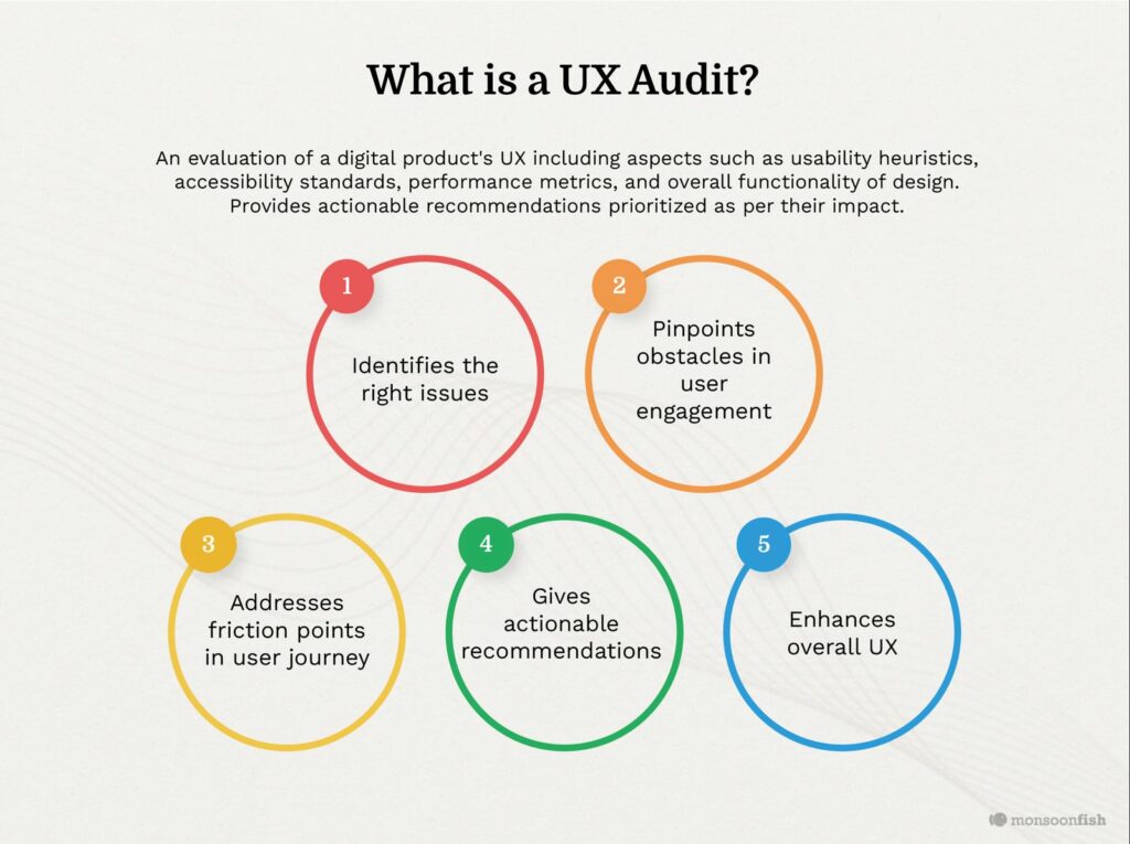 A UX audit is a structured review of your product’s user experience, focusing on: